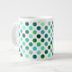 Uma dispersão calorosa de pontos verdes e azuis evoca folhas de floresta e águas tranquilas.