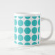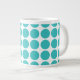 Mini Bolinhas Jumbo Mug. Bonitas e Trendy. Este design apresenta pequenas bolinhas circulares em azul-turquesa e branco. O texto pode ser adicionado a esta design para lhe dar um toque pessoal.