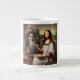 Esta caneca única é uma reviravolta divertida na famosa pintura, mostrando Mona Lisa segurando uma paleta e uma escova, pintando ativamente o retrato de Da Vinci em um calcanhar.