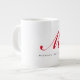 Caneca De Café Grande Monograma Nome Inicial Branco Vermelho Único Minim
