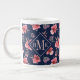 Caneca De Café Grande Monograma| Padrão de Aquarela Rosa Escuro