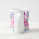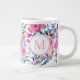 Personalize uma linda caneca floral rosa de verão com seu monograma. O design da caneca é um belo arranjo floral de aquarela, acentuado por folhagem verde e fundo branco. O monograma tem uma cor rosa correspondente e se senta sobre um círculo branco rodeado por uma borda rosa dupla. Totalmente personalizável e transferível. Mug de café gigante, cor-de-rosa, monograma personalizável