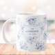 Caneca De Café Grande Monogrammed Classic Blue Flowers Floral Pattern