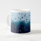 Uma doce caneca azul com gotas de chuva para café e chá.