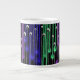 Esta caneca de café tem uma imagem de um lápis de abstrato que passou por ajustes no Photoshop para fazer o que é. Como artista, passei muito tempo trabalhando com cores brilhantes e quanto mais eu fiz isso mais decidi que verde, azul e roxo são minhas cores favoritas para usar juntas. E ter a design sobre um fundo preto faz com que se destaque mais.