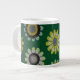 Margarida amarela em um fundo verde. Fotografia de afegão feita é padrão de margarida. O fundo é verde com flores em amarelos, castanhos, bronzeados, cinzas e verdes