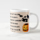 Aqui está uma linda caneca de Halloween com um poema bobo e imagens divertidas de Halloween Poetess e o artista internacional Jo-Ann Newby Hayden