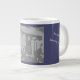 The Giant Coffee Mug features an athletic woman performs an intense spinning workout on an indoor bike. Focused and full of energy, she trains endurance and cardio in a modern gym environment.