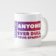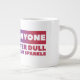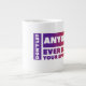 Jumbo Alguns dias, uma xícara de joe de tamanho normal simplesmente não vai funcionar. Quando precisar de uma dose extra de cafeína, pegue a sua caneca de café extragrande de Zazzle. Vai acomodar um cheio de 20 onças de Venti. Perfeito para sopa, cereal, sorvete ou chili também! Esta caneca gigante apresenta uma alça em forma de C para um corte confortável. Dimensões: Altura: 4,5" Diâmetro: 3,9" Capacidade: 20 onças de micro-ondas e lava-louças Forte, de cerâmica Cumpre ou excede os requisitos do FDA para a segurança das comidas e bebidas Impressos a pedido em Reno, NV Designer Dica: Para garantir o impressão de mais alta qualidade, note que a área de design personalizável deste produto mede 4" alto x 10,5"