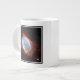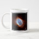 Esta comparação lado a lado mostra observações da Nebulosa do Anel Sul em luz quase infravermelha, à esquerda, e luz infravermelha de médio, à direita, do Telescópio Espacial James Webb. Esta cena foi criada por uma estrela anã branca - os restos de uma estrela como o nosso Sol depois de derramar suas camadas externas e parar de queimar combustível através da fusão nuclear. Essas camadas externas agora formam as conchas ejetadas ao longo dessa visão. Na imagem da Câmera Near-Infravermelho (NIRCam), a anã branca aparece no canto inferior esquerdo da estrela central brilhante, parcialmente escondida por um pico de difração. A mesma estrela aparece - mas mais brilhante, maior e mais vermelha - na imagem do Instrumento Infravermelho de Médio (MIRI). Esta estrela anã branca está enrolada em camadas grossas de poeira, que a fazem parecer maior. A estrela mais brilhante em ambas as imagens ainda não derramou suas camadas. Ela orbita de perto a anã branca mais escura, ajudando a distribuir o que ela é ejetada. Ao longo de milhares de anos e antes de se tornar uma anã branca, a estrela ejetou periodicamente a massa - as cascas visíveis de material. Como se repetíssemos, ela se contraía, aquecia e depois, incapaz de empurrar mais material, pulsado. O material estelar foi enviado em todas as direções e forneceu os ingredientes para essa paisagem assimétrica. Hoje, a anã branca aquece o gás nas regiões internas, que aparecem azul à esquerda e vermelho à direita. Ambas as estrelas estão acendendo as regiões externas, mostradas em laranja e azul, respectivamente. As imagens parecem muito diferentes porque o NIRCam e o MIRI coletam diferentes comprimentos de onda de luz. NIRCam observa a luz quase infravermelha, que está mais próxima dos comprimentos de onda visíveis que nossos olhos detectam. MIRI vai mais longe no infravermelho, pegando comprimentos de onda infravermelhos de médio. A segunda estrela aparece mais claramente na imagem do MIRI, porque este instrumento pode ver a poeira brilhando ao seu redor, trazendo-a mais claramente à vista. As estrelas, e suas camadas de luz, roubam mais atenção na imagem do NIRCam, enquanto a poeira toca a liderança na imagem do MIRI, especificamente a poeira que é iluminada. Par na região circular no centro e você verá um cinturão assimétrico e instável de material. É aqui que se encontram duas tigelas que compõem a nebulosa. (Nessa visão, a nebulosa está num ângulo de 40 graus.) A luz que viagem através da poeira laranja na imagem NIRCam, que se parece com holofotes, desaparece em comprimentos de onda infravermelhos mais longos na imagem MIRI. No infravermelho próximo, as estrelas têm picos de difração mais proeminentes porque são tão brilhantes nesses comprimentos de onda. No infravermelho de médio, picos de difração também aparecem ao redor das estrelas, mas são cada vez mais fracos.