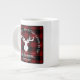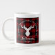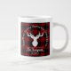 A design do produto apresenta uma silhueta de veado em um padrão clássico de xadrez de búfalos vermelho e preto. Combinado com o seu próprio texto personalizado, esta composição faz uma caneca gigante rústica, moderna e única de café para o Dia de Ação de Graças, feriado de Natal, reagrupamento familiar ou qualquer outro encontro especial!