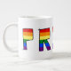 Este design colorido apresenta a palavra Pride criado com um arco-íris.