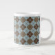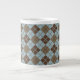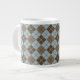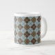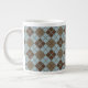 Caneca De Café Grande Padrão de Argyle em Azul e Taupe
