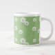 Caneca De Café Grande Padrão de Dandelion em tela de fundo verde