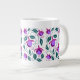Caneca De Café Grande Padrão de Flores de Fuschia Roxo