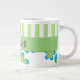 Caneca De Café Grande Padrão De Flores, Listras Verdes, Seu Nome