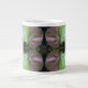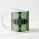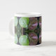 O padrão dessa Mug Gigante, em tons naturais de verde, romas mutados e uma dica de azul claro, foi feito de uma fotografia original de uva-do-mar crescendo ao longo da praia. A foto é um close que mostra duas das folhas quase redondas, uma delas ainda amarela-esverdeada, e a outra se torna uma roxa avermelhada à medida que o inverno se aproxima.