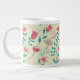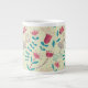 Caneca De Café Grande Padrão floral com gatos de desenho