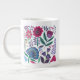 Caneca De Café Grande Padrão Floral de Arte Folk Magenta