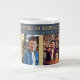 18º Aniversário, caneca fotográfica personalizada. O modelo de foto é configurado para você adicionar 4 de suas fotos favoritas. Você também pode adicionar sua mensagem personalizada, o ano e editar a ocasião, se desejar. A redação atual diz "Parabéns no 18º Aniversário" e "desejamos-lhe um ano de felicidade abundante | [nome(s)] [ano]", todos eles personalizados. A caneca tem uma paleta colorida de areia, azul profundo, verde-turquesa e amarelo-ouro. Este design está disponível em várias cores - então você escolhe a cor que mais gosta e edita a idade de aniversário.