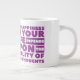 Jumbo Alguns dias, uma xícara de joe de tamanho normal simplesmente não vai funcionar. Quando precisar de uma dose extra de cafeína, pegue a sua caneca de café extragrande de Zazzle. Vai acomodar um cheio de 20 onças de Venti. Perfeito para sopa, cereal, sorvete ou chili também! Esta caneca gigante apresenta uma alça em forma de C para um corte confortável. Dimensões: Altura: 4,5" Diâmetro: 3,9" Capacidade: 20 onças de micro-ondas e lava-louças Forte, de cerâmica Cumprir ou exceder os requisitos do FDA para o Designer de Segurança de comidas e bebidas Dica: Para garantir o impressão de alta qualidade, note que a área de design personalizável deste produto mede 4" alto x 10,5" de largura