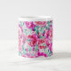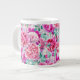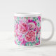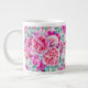 Caneca De Café Grande Pêonias Rosa Extremas E Folhas De Teto Verde