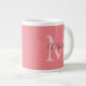 Monograma Elegante Personalizado Modelo de Tendência Inicial Charisma Red White Classic Specialty Mug de Café Gigante.