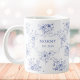 Introducing our Personalized Mothers Day Blue Flowers Floral Giant Coffee Mug. Featuring vintage floral pattern and editable texts that can be personalized. Suitable for special occasions like mother's day and as a gift for mothers and Grandmas.