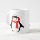 Pinguim de inverno com lenços vermelhos e cachecol, flocos de neve em segundo plano