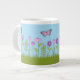 Caneca De Café Grande Pink Flowers and Butterfly All-Over Print