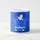 Possui "shalom" (Hebraico "paz") e um carregando de pomba um pouco de galho de oliveira em seu bico sobre um fundo fractal branco e azul que lembra asas de aves.