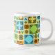 Uma caneca especial ousada e estampada com uma legenda engraçada para quem gosta de chá ou café. Use "Personalizar este modelo" para alterar o texto "Primeiro as Coisas Mais Importantes Pausa para Chá!", se desejar. Ocupada com azulejos decorativos de vários tamanhos e padrões variados. Desenhos pretos em fundos laranja, verde, azul e amarelo desbotados. Todos os padrões foram desenhados e criados por mim e são inspirados no design celta e islâmico.
