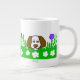 Vocês podem admirar meu adorável desenho de um filhote fofo brincando com grama verde cheia de flores, eu chamo esse desenho, "Pup N Play". Esta caneca Jumbo faz o presente perfeito para qualquer ocasião.