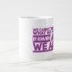 Jumbo Alguns dias, uma xícara de joe de tamanho normal simplesmente não vai funcionar. Quando precisar de uma dose extra de cafeína, pegue a sua caneca de café extragrande de Zazzle. Vai acomodar um cheio de 20 onças de Venti. Perfeito para sopa, cereal, sorvete ou chili também! Esta caneca gigante apresenta uma alça em forma de C para um corte confortável. Dimensões: Altura: 4,5" Diâmetro: 3,9" Capacidade: 20 onças de micro-ondas e lava-louças Forte, de cerâmica Cumprir ou exceder os requisitos do FDA para o Designer de Segurança de comidas e bebidas Dica: Para garantir o impressão de alta qualidade, note que a área de design personalizável deste produto mede 4" alto x 10,5" de largura