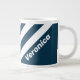Caneca De Café Grande Retro Navy Three Stripes with Name
