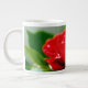 Caneca De Café Grande Rosa vermelha de manhã coberta com gotas de orvalh