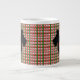 Esta caneca apresenta uma silhueta de um pequeno Terrier escocês mostrando seu grande coração. Em um fundo de xadrez de gingham vermelho e verde.