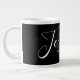 Caneca De Café Grande Seu nome | Script branco elegante em preto