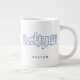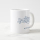 Esta design apresenta um esboço desenhado à mão do horizonte de Boston sobre um fundo marrom.