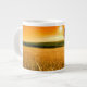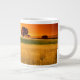 Vista de ângulo largo de um pôr do sol vermelho-sangue sobre um campo de trigo ouro. Plano de fundo genérico - sem localização