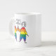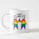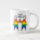 Este trabalho de arte apresenta duas mulheres arco-íris com uma ideia e um sinal.
