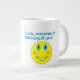 Jumbo Alguns dias, uma xícara de joe de tamanho normal simplesmente não vai funcionar. Quando precisar de uma dose extra de cafeína, pegue a sua caneca de café extragrande de Zazzle. Vai acomodar um cheio de 20 onças de Venti. Perfeito para sopa, cereal, sorvete ou chili também! Esta caneca gigante apresenta uma alça em forma de C para um corte confortável. Dimensões: Altura: 4,5" Diâmetro: 3,9" Capacidade: 20 onças de micro-ondas e lava-louças Forte, de cerâmica Cumprir ou exceder os requisitos do FDA para o Designer de Segurança de comidas e bebidas Dica: Para garantir o impressão de alta qualidade, note que a área de design personalizável deste produto mede 4" alto x 10,5" de largura