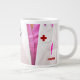 Jumbo Alguns dias, uma xícara de joe de tamanho normal simplesmente não vai funcionar. Quando precisar de uma dose extra de cafeína, pegue a sua caneca de café extragrande de Zazzle. Vai acomodar um cheio de 20 onças de Venti. Perfeito para sopa, cereal, sorvete ou chili também! Esta caneca gigante apresenta uma alça em forma de C para um corte confortável. Dimensões: Altura: 4,5" Diâmetro: 3,9" Capacidade: 20 onças de micro-ondas e lava-louças Forte, de cerâmica Cumprir ou exceder os requisitos do FDA para o Designer de Segurança de comidas e bebidas Dica: Para garantir o impressão de alta qualidade, note que a área de design personalizável deste produto mede 4" alto x 10,5" de largura