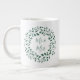 Caneca De Café Grande Sr. e Sra. | Casamento Rustic Green Wreath