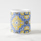 O Design Sun & Sky Harmony explode com a vibração do Mediterrâneo, misturando amarelo radiante com azul legal em um padrão alegre e simétrico. Centrado por motivos florais e ornamentais enquadrados em curvas e pergaminhos radiculares, este design evoca os azulejos tradicionais portugueses e as cerâmicas endurecidas pelo sol do sul da Europa. Um toque perfeito para azulejos, portas copos, canecas ou qualquer sotaque doméstico, esta peça traz uma energia quente, mas refinada, tanto para as configurações modernas como rústicas de decoração