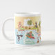 Uma caneca jumbo brilhante e encantadora é um desenho animado do sul da Califórnia - personagens zany desfrutam do sol quente da Califórnia que brilha acima de tudo.
