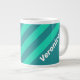 Caneca De Café Grande Teal Beach Breeze Stripes with Name