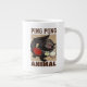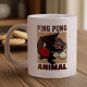 Uma caneca especial para um mestre da tênis mesa, apresentando um desenho engraçado de um bearcat binturong esportivo fazendo uma batida na testa de pingue-pongue. Use "Personalizar este modelo" para alterar o texto "PING PONG ANIMAL" e fazer um presente personalizado exclusivo. As mudanças de texto são refletidas em ambos os lados. É um ping pong binturong!