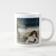 Uma pintura texturizada com uma imagem de visor de uma sereia caindo à luz do sol numa praia.