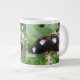 Esta caneca incrível mostra uma fotografia de uma linda borboleta tropical. Esta espécie é preta, principalmente, com belas manchas azuis brilhantes e iridescentes em cada asa. A fotografia foi tirada usando macrofotografia para um resultado incrivelmente detalhado.